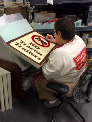 Cracker Barrel, a faithful client of Big Visual, has each of its interior and exterior signs sanded and hand painted. Cindy, who specializes in hand painting for the ASD team, carefully paints and finishes each of them.