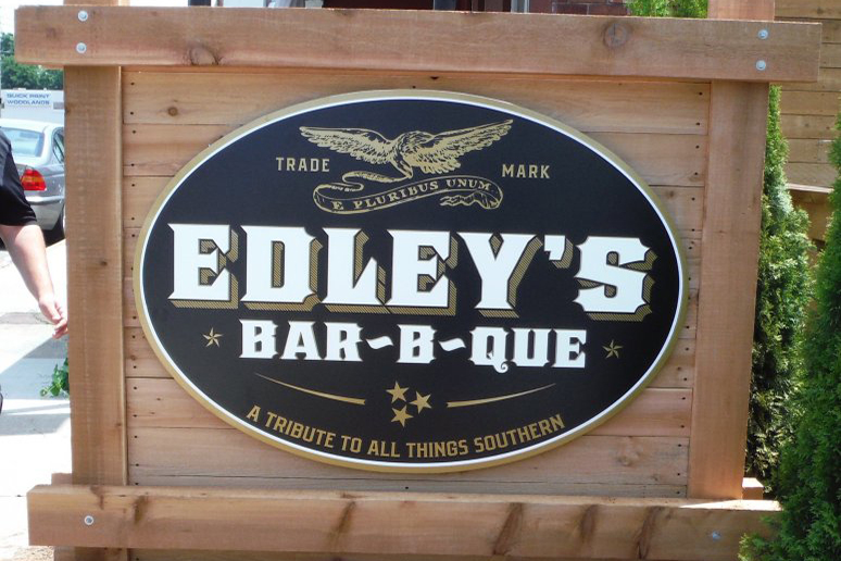 If you’ve ever ordered a pork sandwich from the Edley’s Bar-B-Que in East Nashville, you’ve likely seen its custom outdoor sign that was created by Big Visual’s ASD team. The team built this monument from scratch, with only an idea on paper. The team routed, hand painted, finished, and installed the finished product.