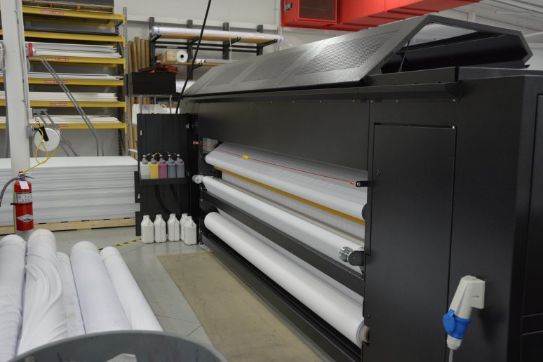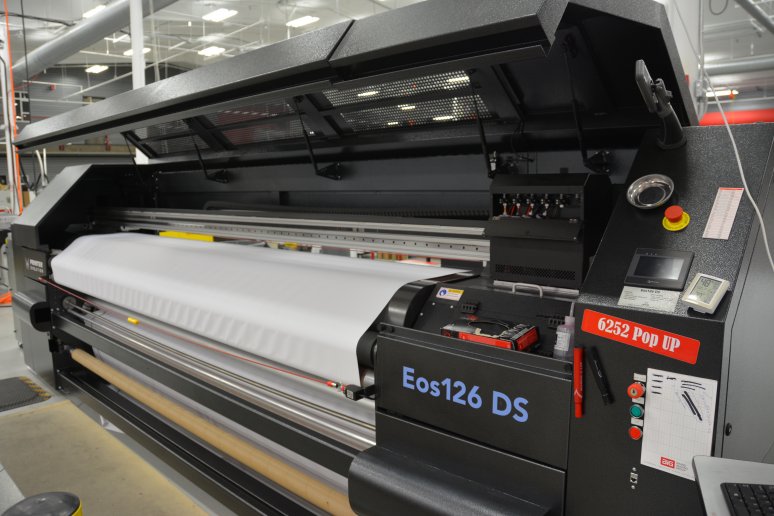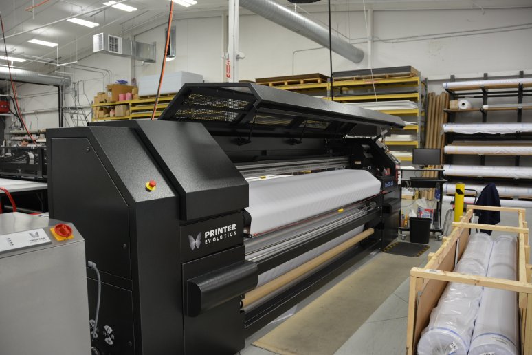 With all the new printer technology being developed, Big Visual Group is constantly looking to upgrade our arsenal of premium printers. We recently got a new Printer Evolution Eos 126-DS printer. DS stands for “dye sublimation,” which is a process that the printer uses to let ink permeate the fibers of the fabric. The printer prints directly to fabric, which then rolls through the unit, hitting a high heat level. Once the temperature gets hot enough, the ink turns into a gas, which is imbued onto the fabric. This process gives the fabric a nice, rich coloration, which allows the print to be seen from both sides and increases the durability of the print. You can even wash and dry the fabric without compromising the integrity of the print!