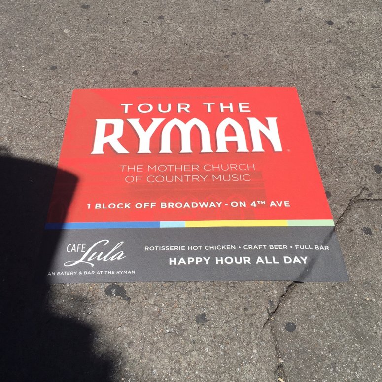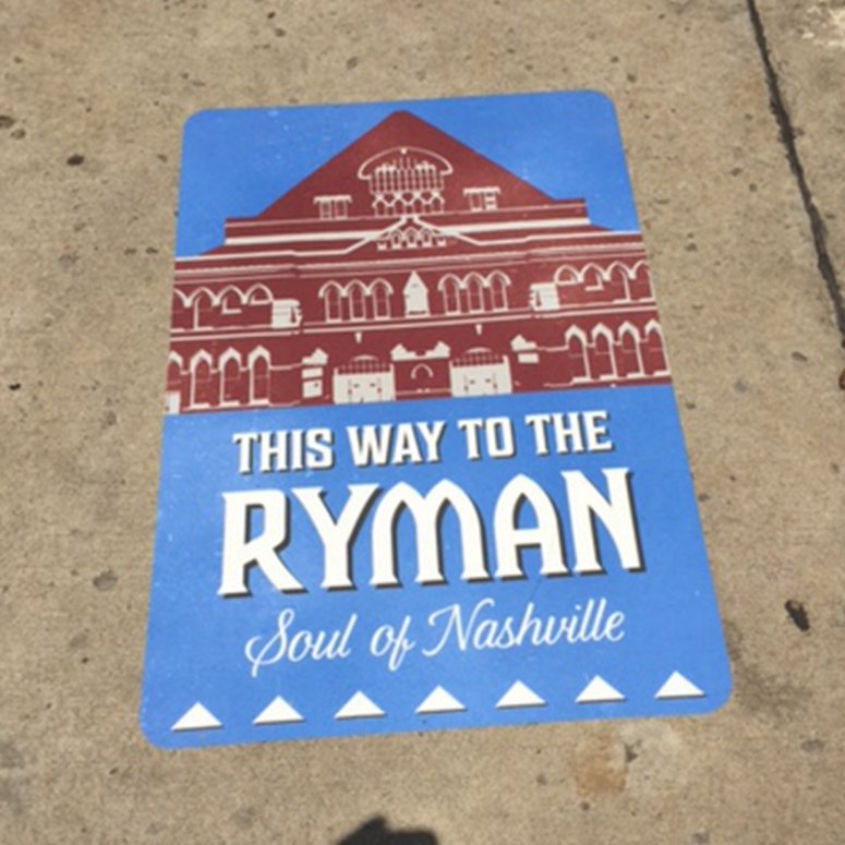 The mother church of country music, Ryman Auditorium, is another special landmark in Nashville that uses Big Visual Group to create their sidewalk graphics. As you can see in the photos below, they have used our sidewalk graphics to both direct people to their auditorium and promote their brand.