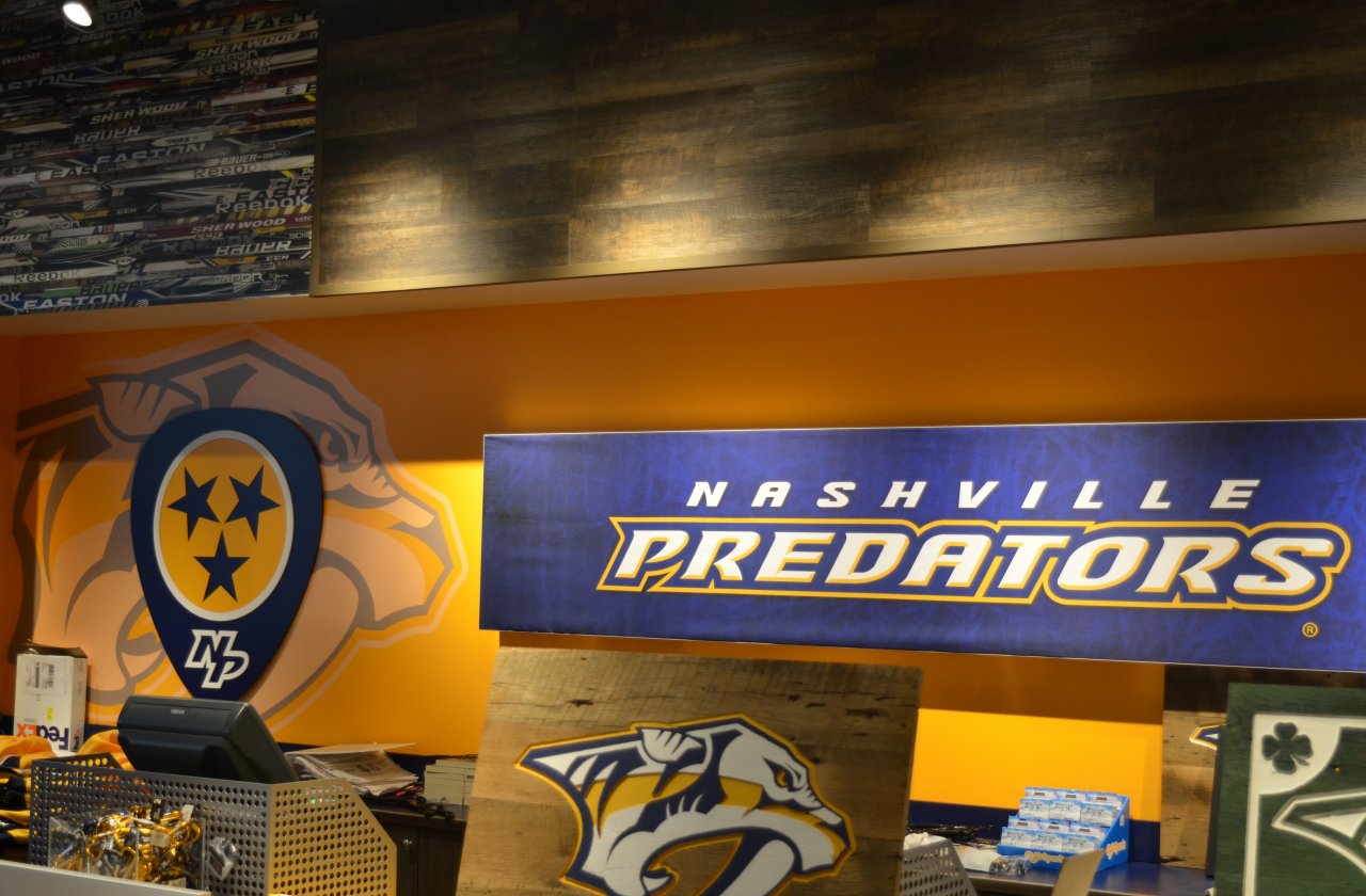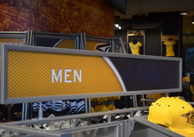 The Nashville Predators were ready to transform an old storage space into a hockey retail store at their home base, Bridgestone Arena. Since Big Visual Group is the official sign and printer partner for the Predators, it was a natural fit to hire our team to do project management, manufacturing, and installation all of the new Nashville Predators Team Store’s signage.