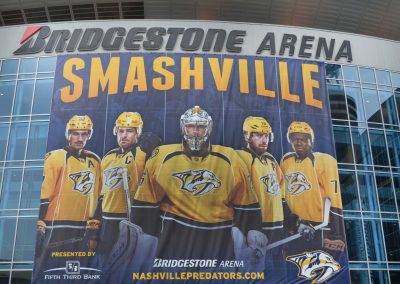 When The Nashville Predators came to Big Visual Group®, they were looking to rebrand the walls of their home base, Bridgestone Arena. What was once called the “gray arena” would soon be transformed with large-format gold graphics, which is the team’s most distinctive color. Big Visual Group has now worked with the Predators since they joined the NHL in 1998, installing promotional visuals both inside the arena and around downtown Nashville.