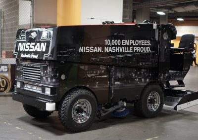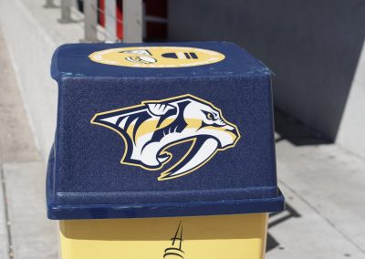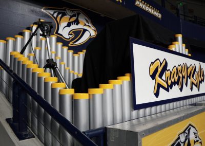With a seating capacity of 17,113 fans, Bridgestone Arena has plenty of room for visual branding and graphics. After consulting with the Predators, Big Visual’s team gathered measurements and began designing promotional wraps to bring the arena’s gray walls to life. Over time, we designed and installed many other products, such as dimensional sponsor graphics, branded arena seating, pillar wraps, Crazy Kyle’s organ, and outdoor banners to create an extraordinary visual experience for Nashville hockey fans.