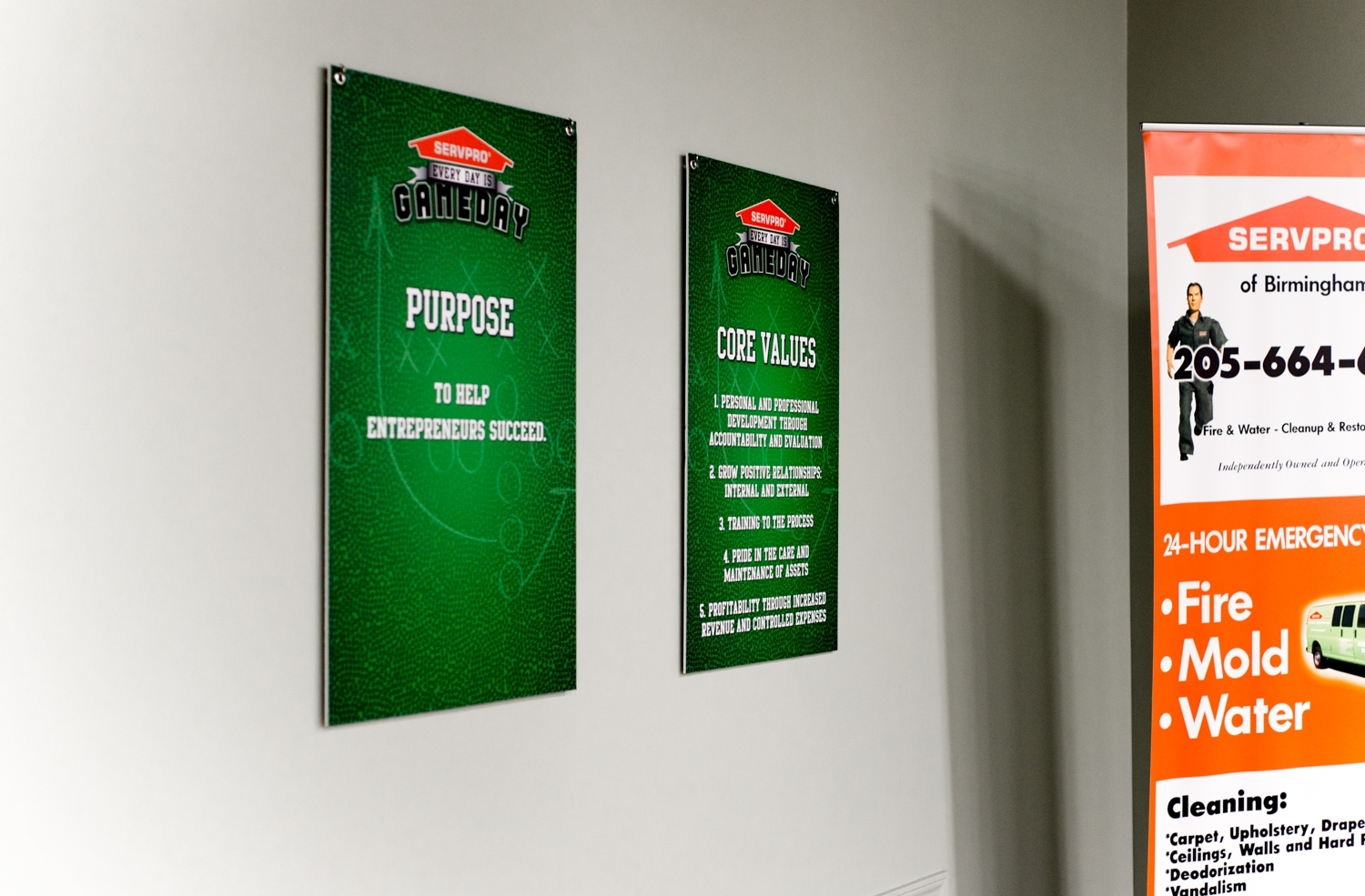 In August of 2015, SERVPRO of Birmingham approached us to take full advantage of all of our services. They were in need of an office visual makeover. This location is one of the most successful and largest SERVPRO offices in the country, so we were honored and thrilled to tackle the job.