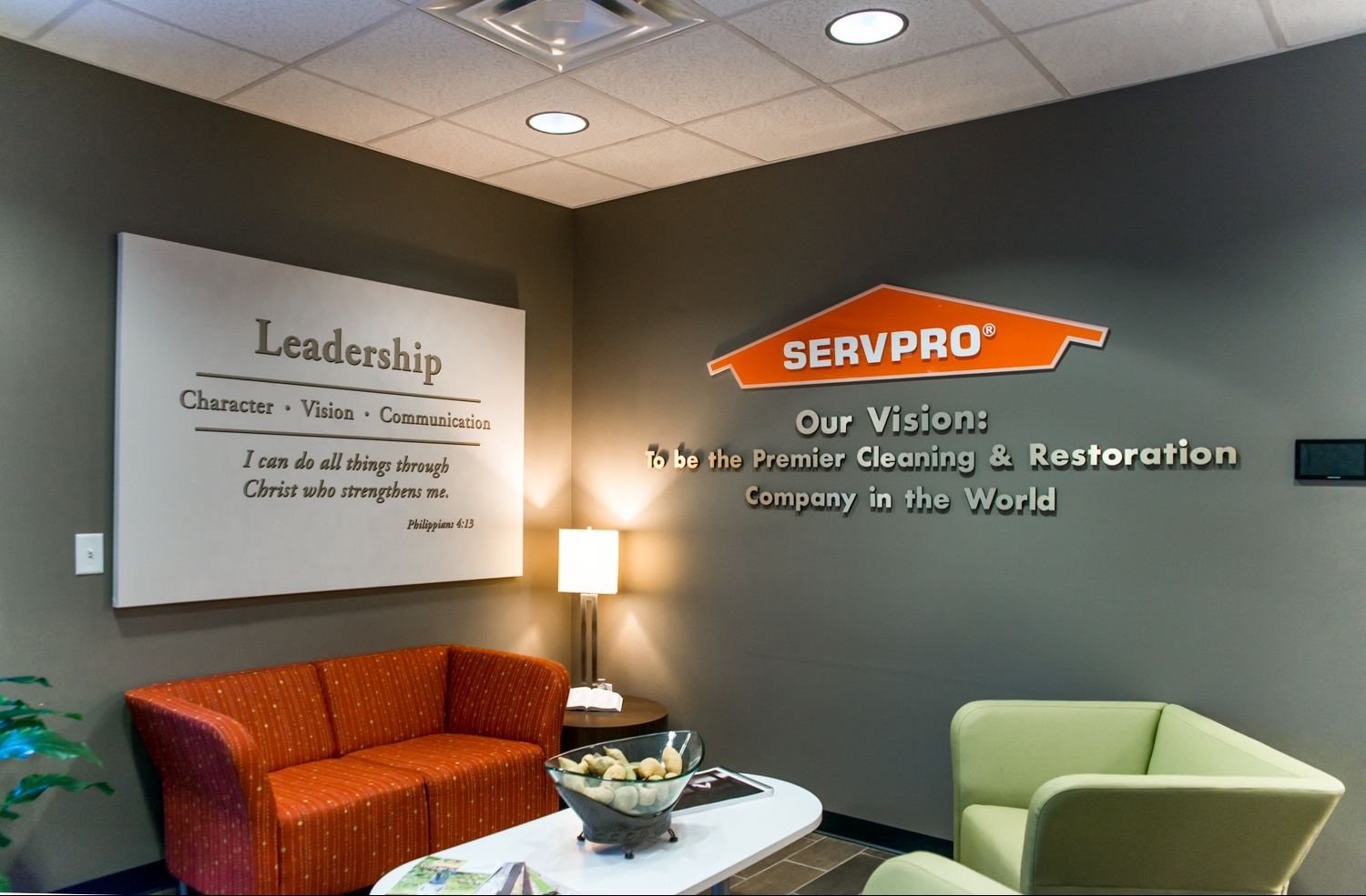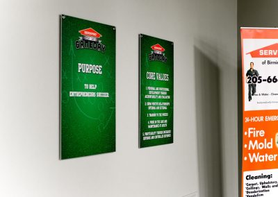 By relying on the company’s brand standards and the creative minds at Big Visual Group, we were able to fully revamp the office and turn it into a SERVPRO-branded wonderland. The office refresh included everything from canvas prints to dimensional graphics. We loved taking this Birmingham office to a whole new level by adding these visual enhancements and utilizing each of the Big Visual Group departments to get the job done.