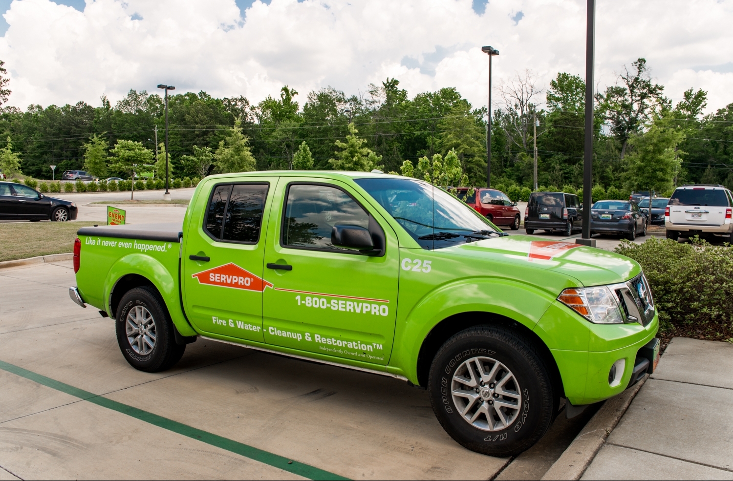 Big Visual Group holds the title of the preferred vendor for SERVPRO, a fire and water cleanup and restoration company. SERVPRO franchises from around the country entrust us to handle their printing and signage needs. We have produced all types of products for this client, including, but not limited to, vehicle wraps, yard signs, banners, flags, and store decor.