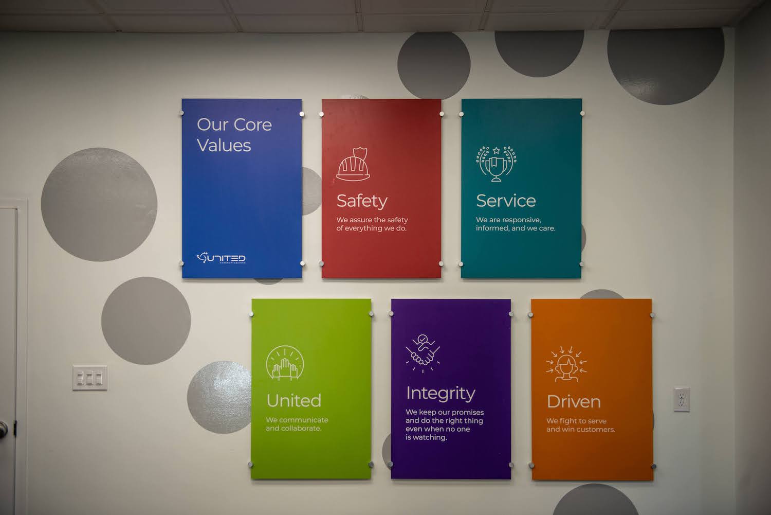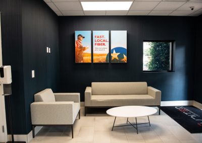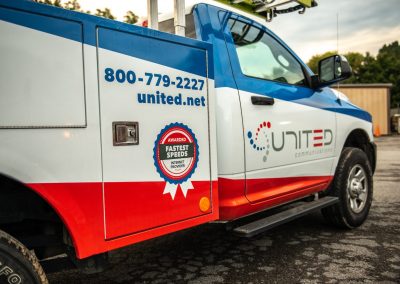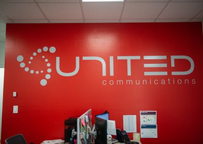 United Communications, a fiber internet provider company in Chapel Hill, Tennessee, has allowed Big Visual Group to create their vehicle wraps for years. When they wanted to update their office space and infuse their new branding throughout it, they came to us because they knew about our corporate office branding expertise.